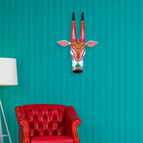 The wooden cow head is not only a work of art but also a tribute to the traditional Pattachitra art form. It has been crafted with precision and care, ensuring that every detail is in perfect harmony with the overall design.